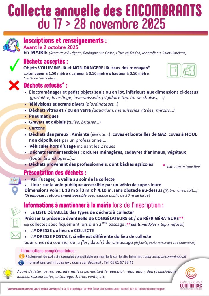 COLLECTE ANNUELLE des ENCOMBRANTS Inscription avant le 2 octobre 2025 via la mairie