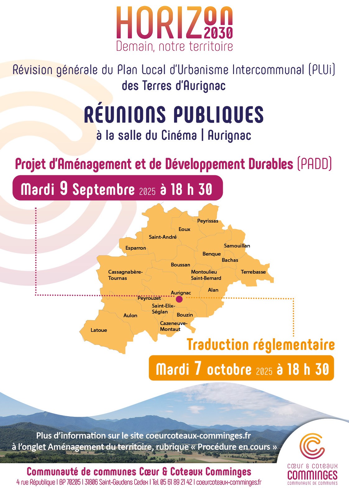 Dans le cadre de la révision du PLUI, nous vous informons qu’il y aura deux réunions d’informations publiques,